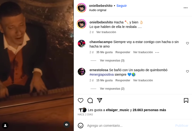 En una reciente publicación en su cuenta de Instagram, Bebeshito compartió un fragmento del videoclip del tema acompañado de las palabras: “Hacha y bien. Lo que hablen de ella le resbala”. Este enigmático mensaje dejó claro que el artista no se inmuta ante la controversia que rodea a su éxito.