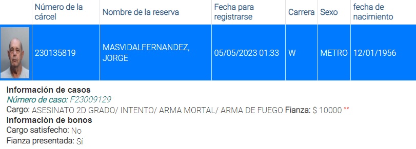 El cubano Jorge Masvidal, padre del expeleador de UFC que lleva el mismo nombre, es sospechoso de un intento de asesinato en segundo grado, por presuntamente dispararle a un hombre en ambos brazos durante un altercado en la casa del atleta, ubicada en Miami-Dade, informó Local 10.