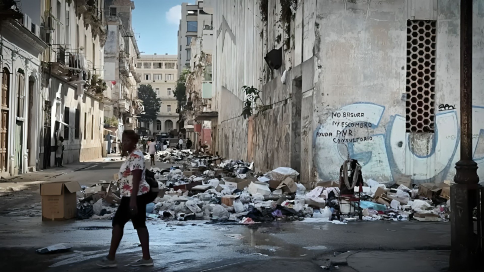 Las imágenes también exponen montañas de basura en Centro Habana y largas filas ante panaderías. Un joven explica el funcionamiento de la libreta de abastecimiento, instaurada en 1963, y resume: “Como no hay mucho, por eso las personas hacen filas”. El equipo intenta comprar paracetamol sin éxito. “Algo para el dolor no hay”, responde una dependienta.