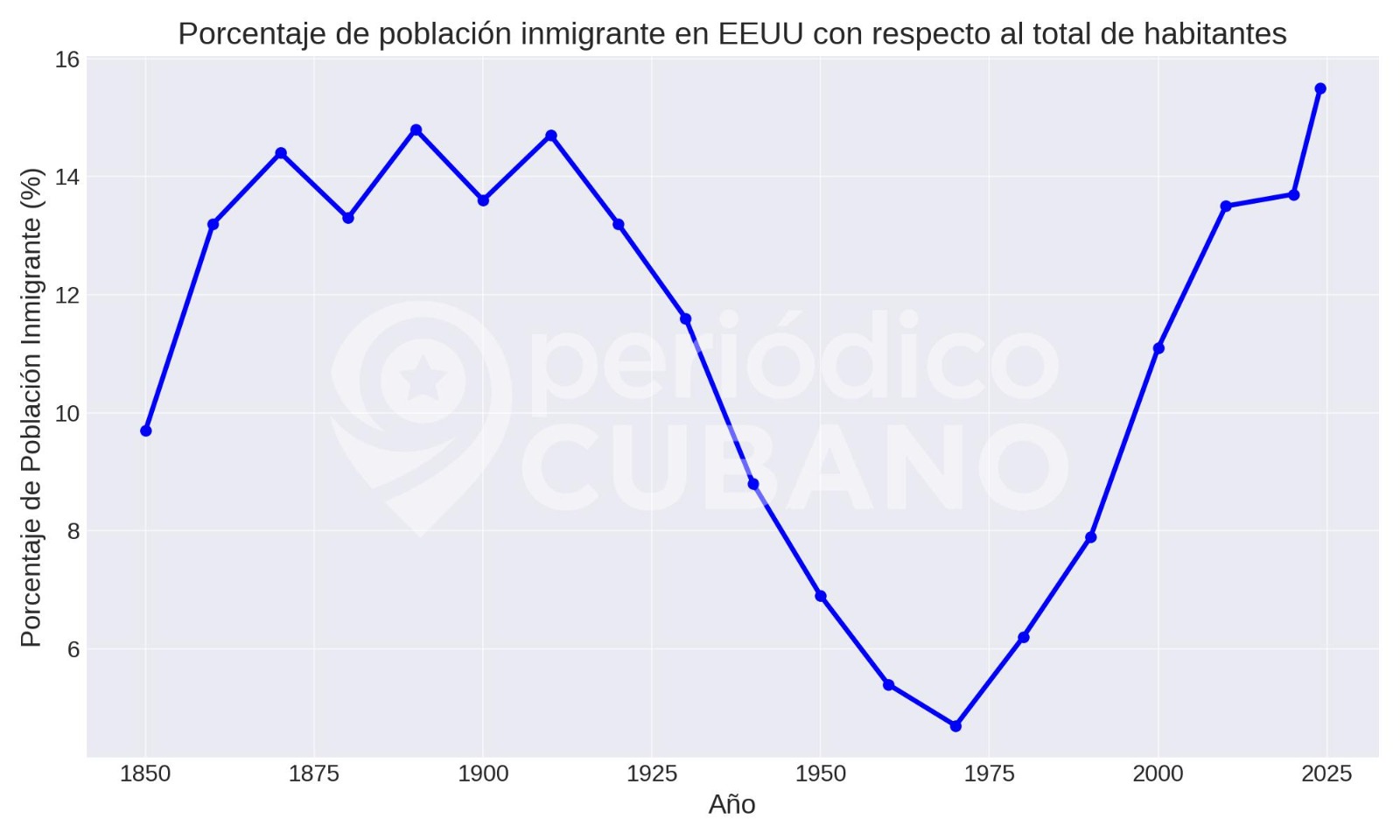 La participación de la población extranjera en EEUU ha experimentado un crecimiento fundamental, más que triplicándose desde 1970, casi duplicándose desde 1990 y aumentando un 40% desde el año 2000. Actualmente, el estimado de 51.4 millones de inmigrantes es superior a las poblaciones individuales de 33 estados del país.