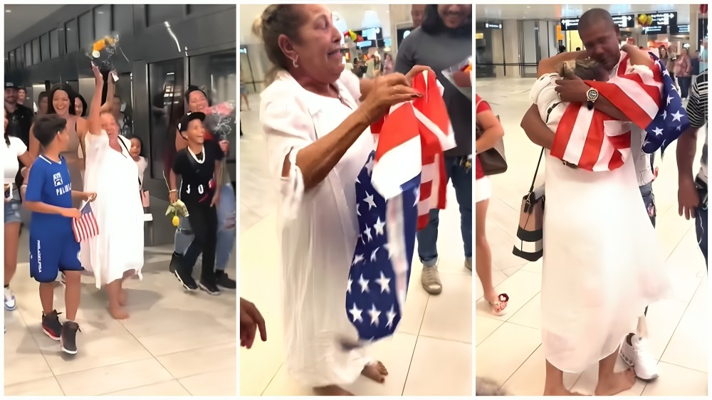 En las imágenes, se observa el efusivo recibimiento que le brindaron sus familiares, durante el cual la mujer celebró su entrada a EEUU bailando y exclamando en voz alta: “Estoy medio sonza. Todavía no he despertado, c*ñ*”.