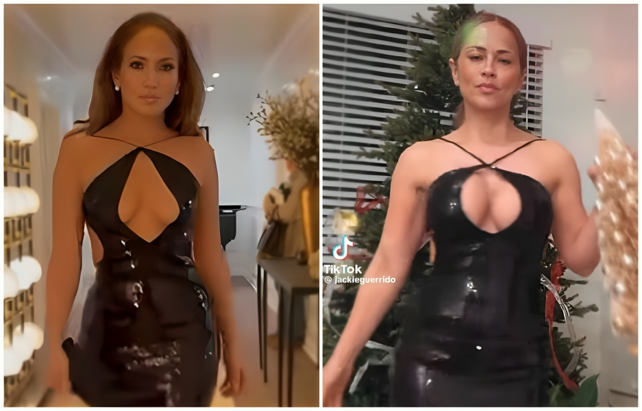 El ejemplo más reciente de esta coincidencia ocurrió cuando Guerrido compartió en Instagram un video decorando su árbol de Navidad, mientras lucía un elegante vestido negro de lentejuelas con un escote pronunciado. El modelo es casi idéntico al que JLo ya había presumido en sus redes sociales, también junto a un árbol navideño y con el mensaje motivador: “Cree en ti misma”.