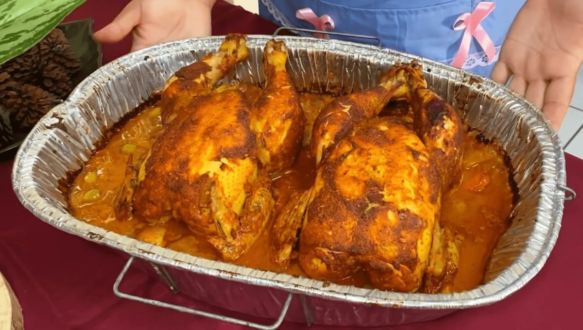 - Rellenar el pollo con la mezcla y coser la abertura para cerrar.