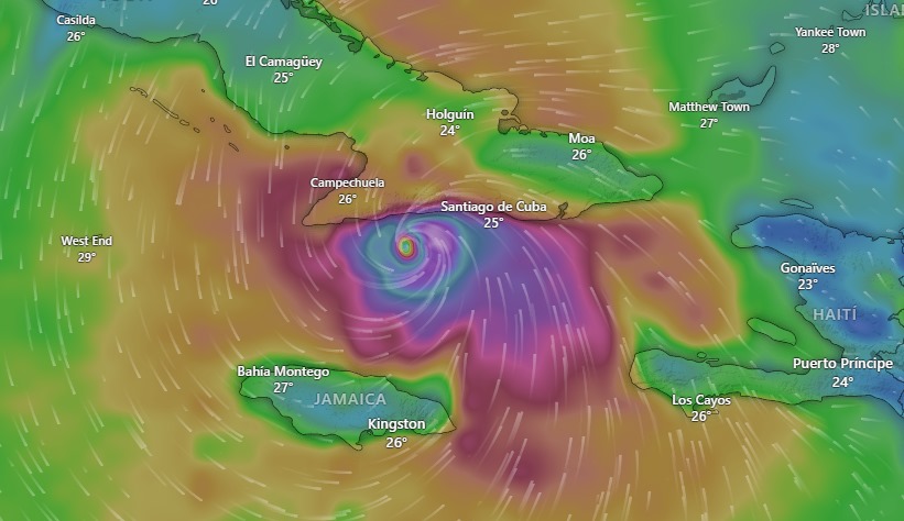 El fenómeno meteorológico se desplaza hacia el oeste y, tras cruzar Jamaica, se dirigirá hacia el norte. Con vientos superiores a los 260 km/h, lluvias intensas, marejadas peligrosas y posibles deslizamientos de tierra, las autoridades cubanas ya han iniciado la evacuación de más de medio millón de personas en los territorios que están en fase de Alarma Ciclónica.