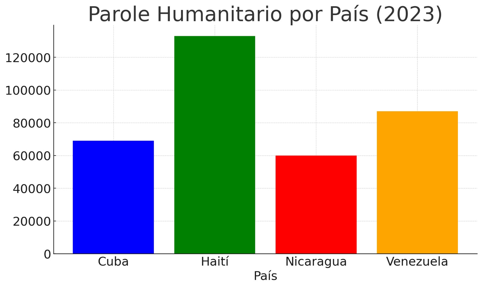 En el periodo de 12 meses, comprendido entre enero y diciembre de 2023, la cifra de cubanos a los cuales se le aprobó una visa humanitaria representa el 21.1% del total de los 327.000 paroles que fueron otorgados a las cuatro nacionalidades involucradas en el programa.