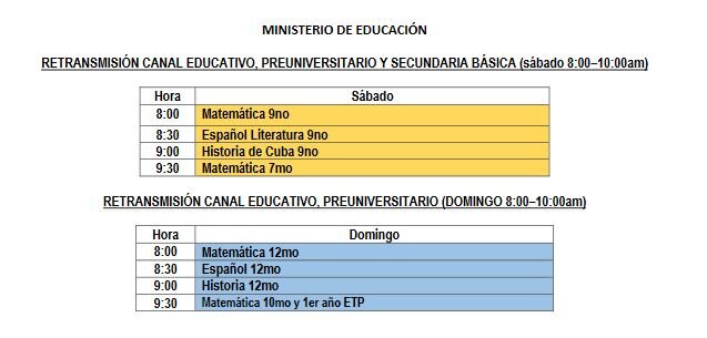 Desde el Mined se aclara que en una primera etapa quedaron fuera de la parrilla televisiva las teleclases de Inglés y Geografía de Primaria, Educación Laboral de Secundaria Básica, Informática, entre otras, que se incorporarán en un segundo momento.