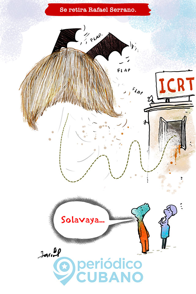 Noticias destacadas Anciano fallece mientras estaba sentado en un parque de La HabanaPeriódico Cubano - 25 abril 2026 1:01 PM Camionera cubana revela cuánto gana en un día de trabajo en EEUUPeriódico Cubano - 25 abril 2026 12:07 PM Por esta razón van a revocar la ciudadanía estadounidense a al menos 300 personasPeriódico Cubano - 25 abril 2026 11:57 AM NOTICIAS DE CUBA Rafael Serrano se retira del NTV Llevaba más de 40 años frente a las cámaras de televisión Garrincha 24 noviembre 2021 12:11 AM El locutor cubano Rafael Serrano se despidió del Noticiero Nacional de la Televisión (NTV) luego de más de 40 años sirviendo a los intereses del régimen castrista. (Caricatura: Garrincha) Compartir FacebookWhatsAppXPinterest ETIQUETASCaricaturasGarrinchaRafael Serrano ¿Qué opinas? ¡Déjanos tu comentario! Cancelar respuesta Comentario: Por favor ingrese su comentario! Nombre:* Por favor ingrese su nombre aquí Email:* ¡Has introducido una dirección de correo electrónico incorrecta! Por favor ingrese su dirección de correo electrónico aquí Sitio web: Guarda mis datos en este navegador para la próxima vez que comente. - Advertisement - Noticias destacadas Destituyen a Alfredo López como director de la Unión EléctricaPeriódico Cubano - 25 abril 2026 9:37 AM Miami Herald revela los lujos de “El Cangrejo” tras negociar con EEUU la salida del régimen cubanoPeriódico Cubano - 24 abril 2026 10:40 AM - Advertisement - Últimas noticias EEUU envía un avión a Cuba para rescatar a niño víctima de secuestro parentalPeriódico Cubano - 22 abril 2026 6:01 AM Entra en vigor nueva ley de Aduana en Cuba: más control sobre los viajeros y sus maletasPeriódico Cubano - 21 abril 2026 11:44 AM - Advertisement - Suscríbete al boletín - Advertisement -