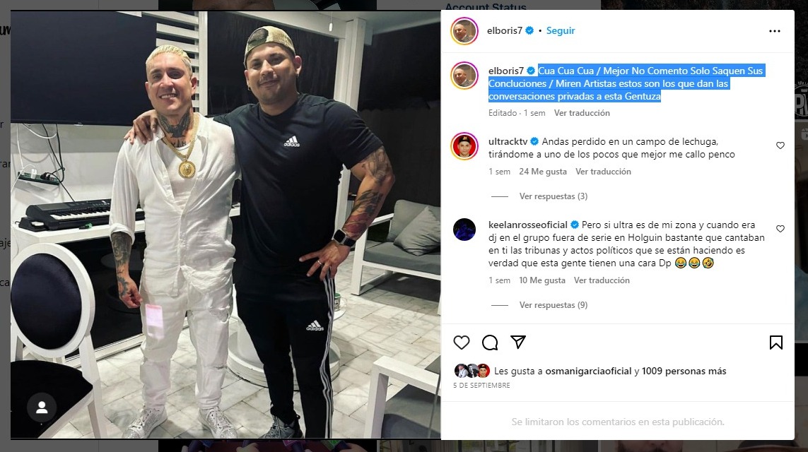 Desde la semana pasada ya Boris Arencibia había culpado a figuras como Osmani García de filtrar información a las influencers como Ultrack para su canal de YouTube al asegurar en su cuenta de Instagram que: “Cuá Cuá Cuá / Mejor No Comento, Solo Saquen Sus Conclusiones / Miren, artistas estos son los que dan las conversaciones privadas a esta Gentuza”, a lo que Ultrack había contestado: “Andas perdido en un campo de lechuga, tirándome a uno de los pocos que mejor me callo penco”.