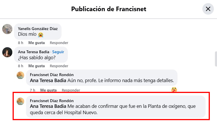 Una explosión en la Planta de Oxígeno de Santa Clara, Villa Clara, fue reportada alrededor de las 4:30 de la madrugada de este domingo. Aún se desconocen los detalles exactos del incidente, pero los habitantes de la ciudad informaron sobre un “intenso ruido acompañado de un enceguecedor resplandor”, según el periodista Francisnet Díaz, quien compartió la noticia a través de su cuenta de Facebook.