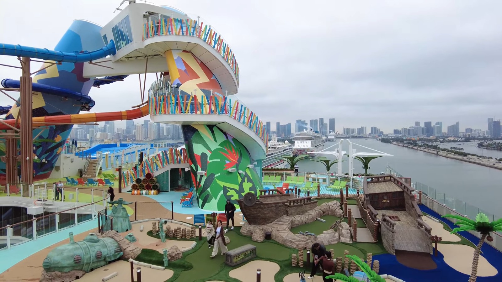El barco ofrece entretenimiento diverso con un teatro acuático en el Aquadome, una pista de patinaje sobre hielo y un parque acuático con toboganes. Para las familias, Surfside brinda atracciones acuáticas y un carrusel, mientras que Thrill Island es perfecto para los amantes de la adrenalina. Por otro lado, Chill Island y Cloud 17 ofrecen espacios de relajación y exclusividad.