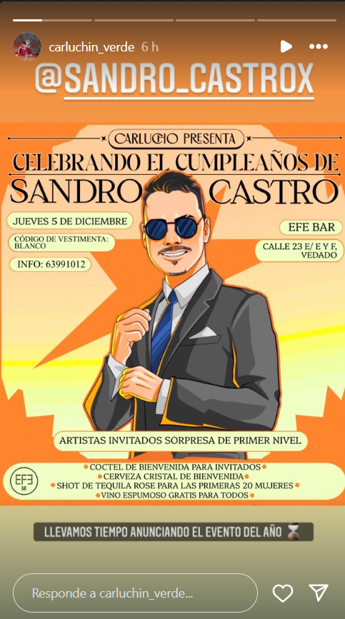 El anuncio se realizó a través de Instagram, donde se compartieron detalles de la festividad programada para el jueves. Según las publicaciones, la fiesta ofrecerá un coctel de bienvenida, cerveza Cristal, tequila para las primeras veinte mujeres y vino espumoso “gratis para todos”.