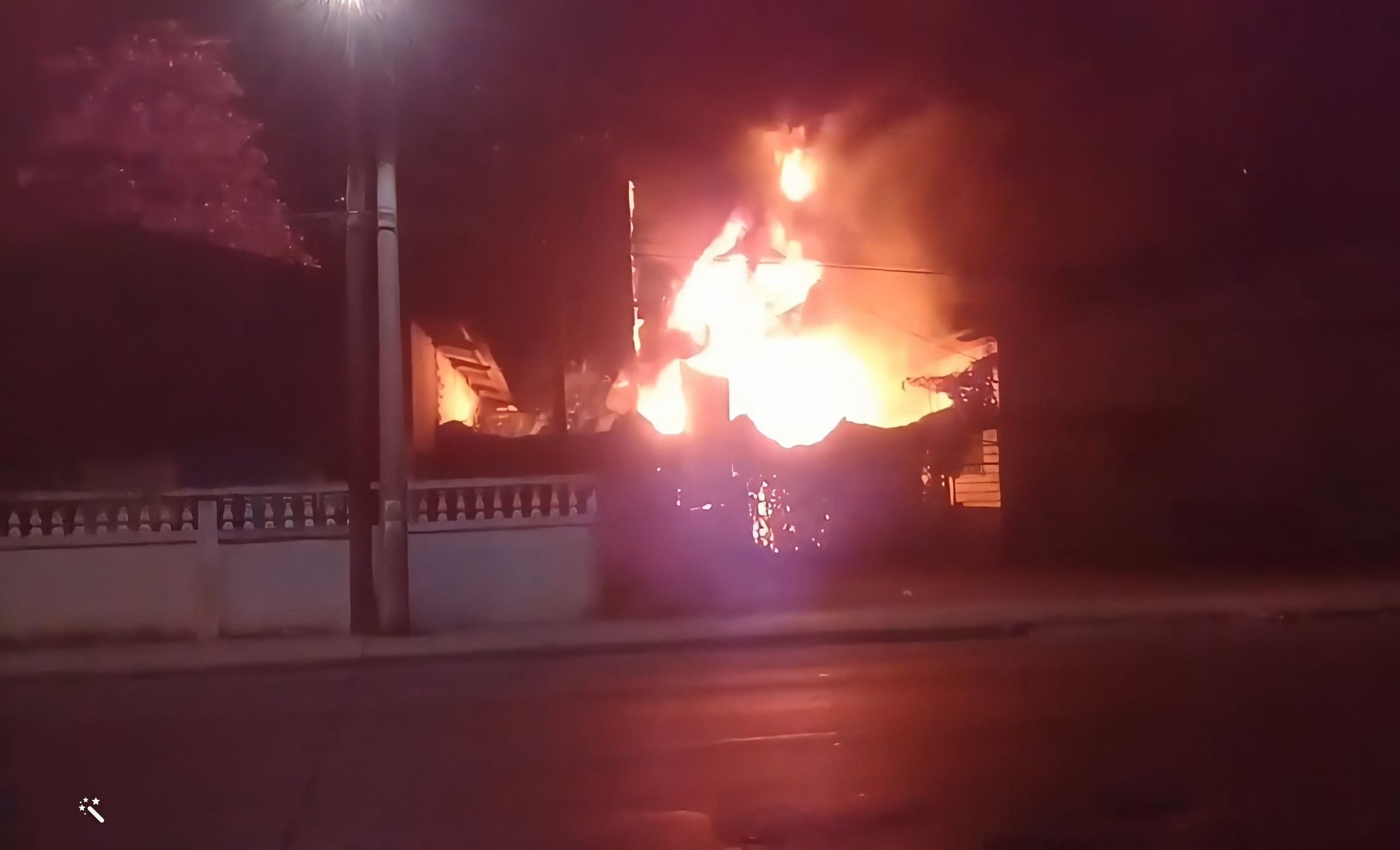 En las imágenes se aprecia el gran alcance de las llamas en la penumbra de la noche, y cómo el fuego devora los cables de los postes de electricidad aledaños.