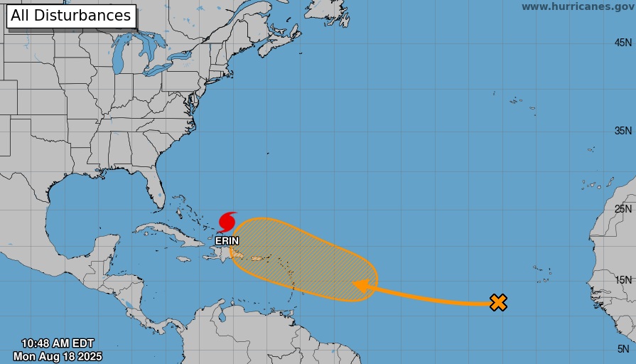 Aunque aún es prematuro determinar su trayectoria e intensidad, el NHC ha asignado una probabilidad de desarrollo del 50% en los próximos siete días. Por otro lado, el huracán Erin continúa su recorrido en el Atlántico, pero ahora con categoría 3 tras haber alcanzado la 5 el pasado sábado.