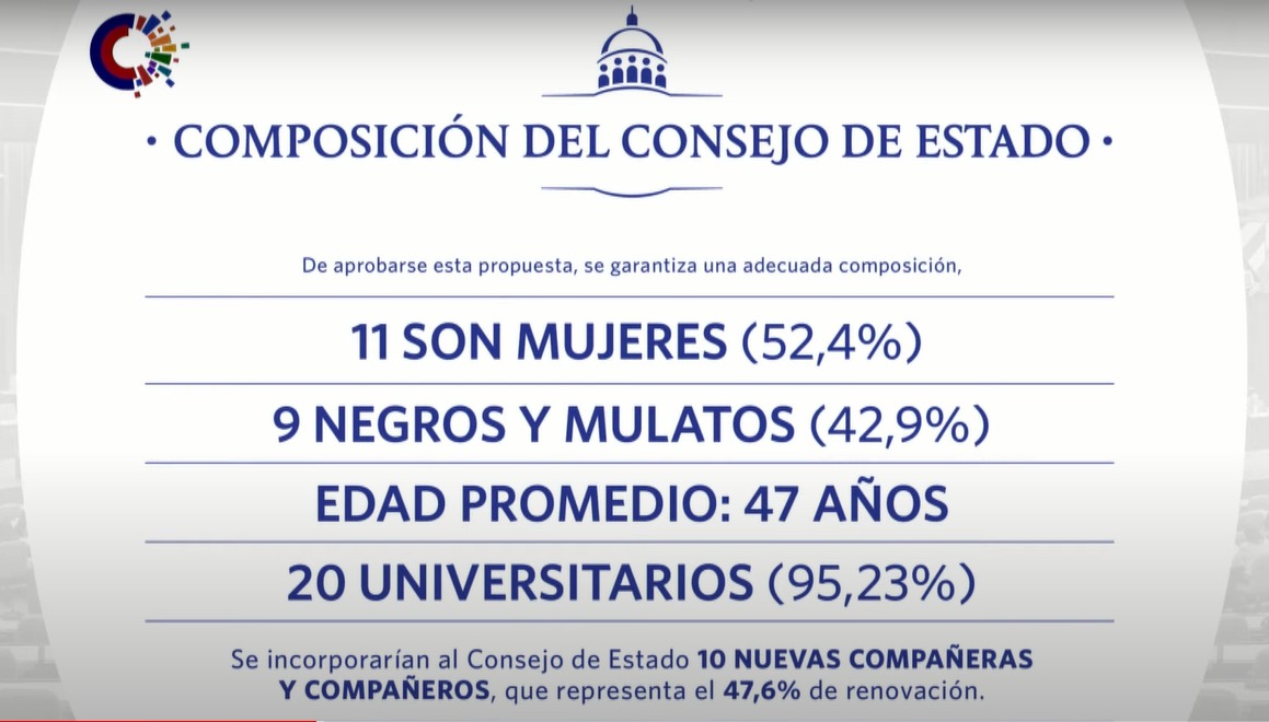 Composición del nuevo Consejo de Estado. (Captura de pantalla: Canal Caribe – YouTube)