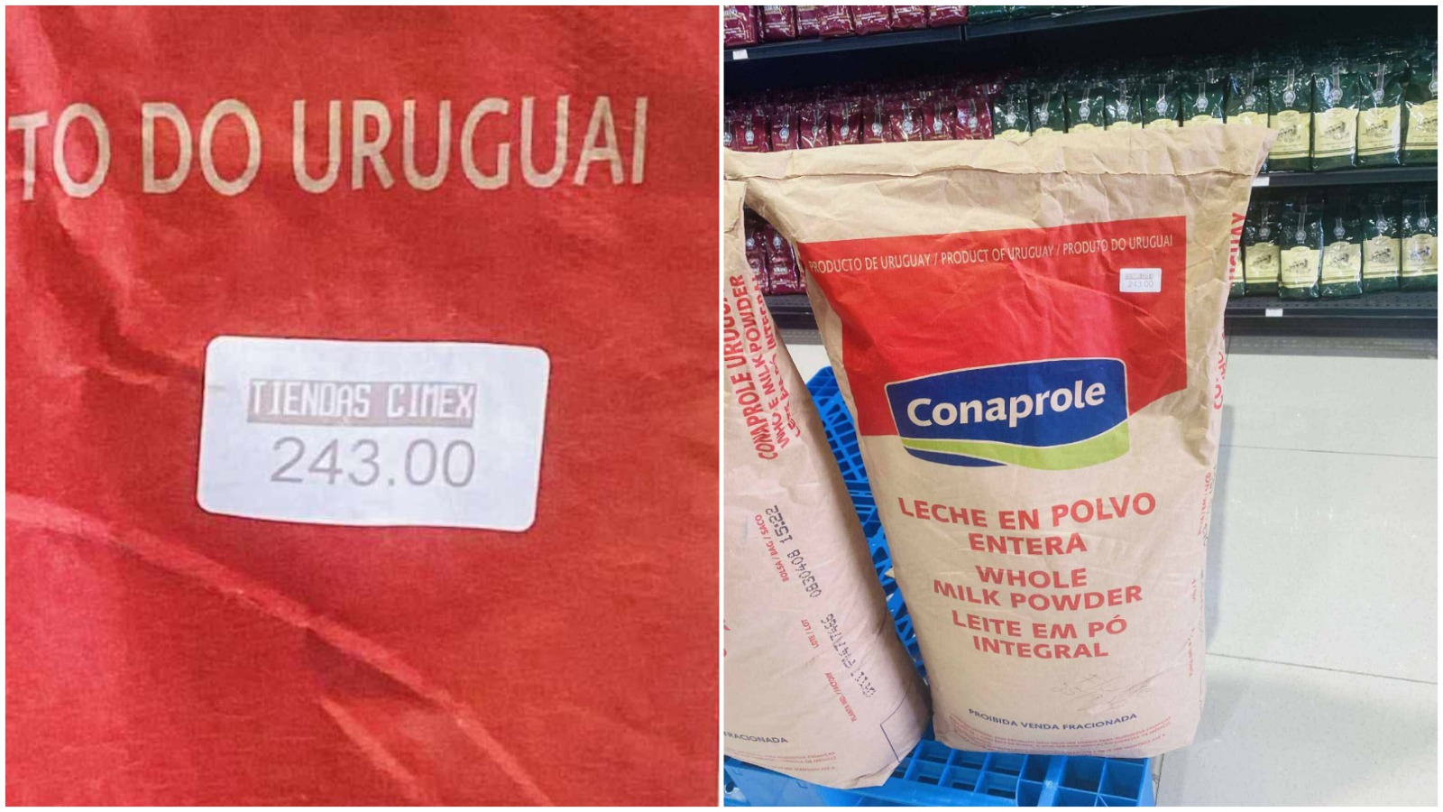 El costo de la leche en polvo en las tiendas en dólares de Cimex del régimen castrista ha alcanzado cifras alarmantes. Un saco de 25 kilogramos de leche en polvo fabricada en Uruguay tiene un costo de 243 dólares, una cifra que equivale a casi 100.000 pesos cubanos (CUP), según el tipo de cambio oficial del Banco Central de Cuba (BCC).