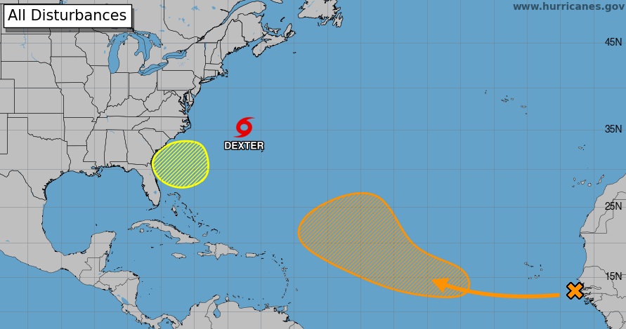 El Centro Nacional de Huracanes (NHC, por sus siglas en inglés) confirmó la formación de la tormenta tropical Dexter en el Atlántico noroeste, que no representa una amenaza inmediata para la costa de los Estados Unidos.