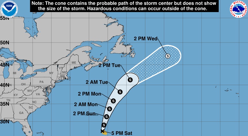 El sistema se desplazará hacia el nor-noreste, con un aumento gradual de su velocidad de avance, seguido de un giro hacia el noreste, lo que lo llevará a pasar bien al este de las Bermudas y a través de las aguas abiertas del Atlántico Norte subtropical.
