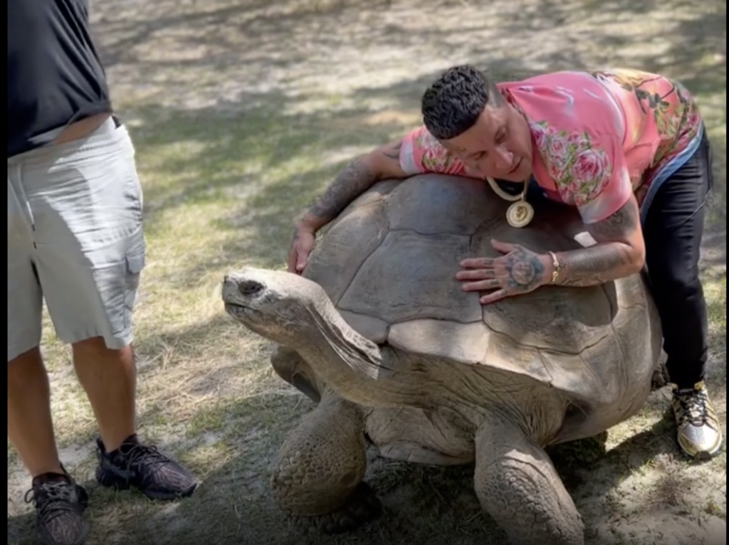 En el video se ve al intérprete de El Taxi abrazando a una inmensa tortuga, y bromeando al decir: “deja que Laura se entere de que la traicioné con una tortuga”.