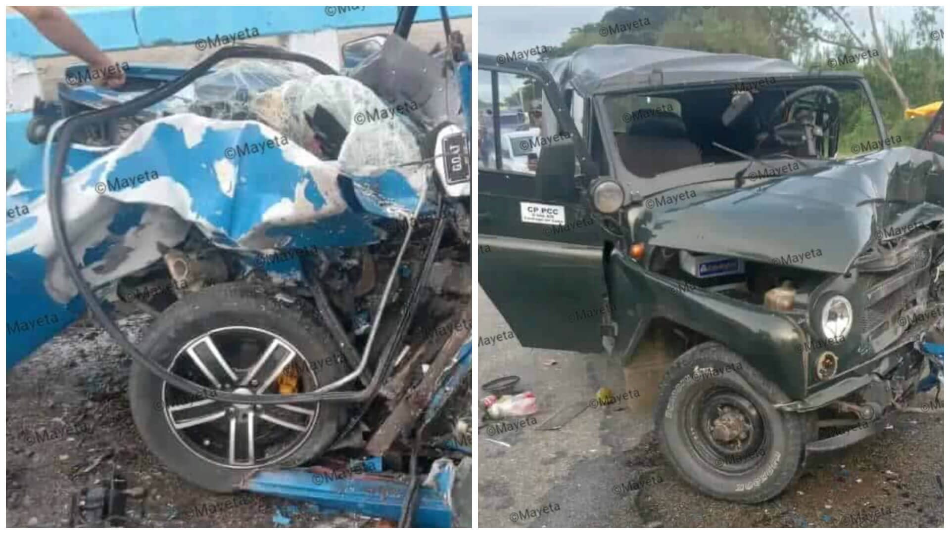 Las imágenes difundidas muestran un choque frontal entre el jeep y un automóvil azul, cuyos ocupantes, en su mayoría civiles, quedaron atrapados entre los hierros. Tres de ellos perdieron la vida en el acto. Aún no han sido identificados públicamente.