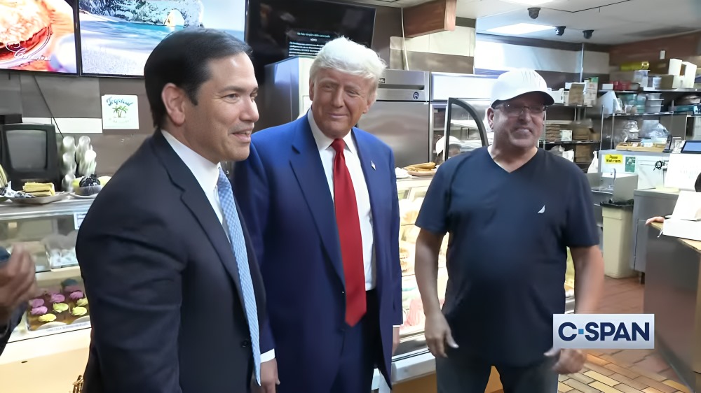 Trump, acompañado por el senador cubanoamericano Marco Rubio y el empresario Vivek Ramaswamy, fue recibido entre aplausos y consignas de “USA” y “Latinos for Trump” por el público presente en Havana Express Cuban Kitchen and Bakery, un restaurante muy concurrido por la comunidad cubana y latinoamericana en la ciudad.