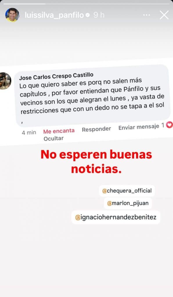 No solo el protagonista ha manifestado su preocupación. Otros miembros clave del elenco, como Mario Sardiñas, quien interpreta a “Chequera”, y Marlon Pijuán, que da vida a “Isidoro”, también compartieron la publicación de Silva en sus propias redes sociales, insinuando que las noticias sobre el programa podrían no ser alentadoras.