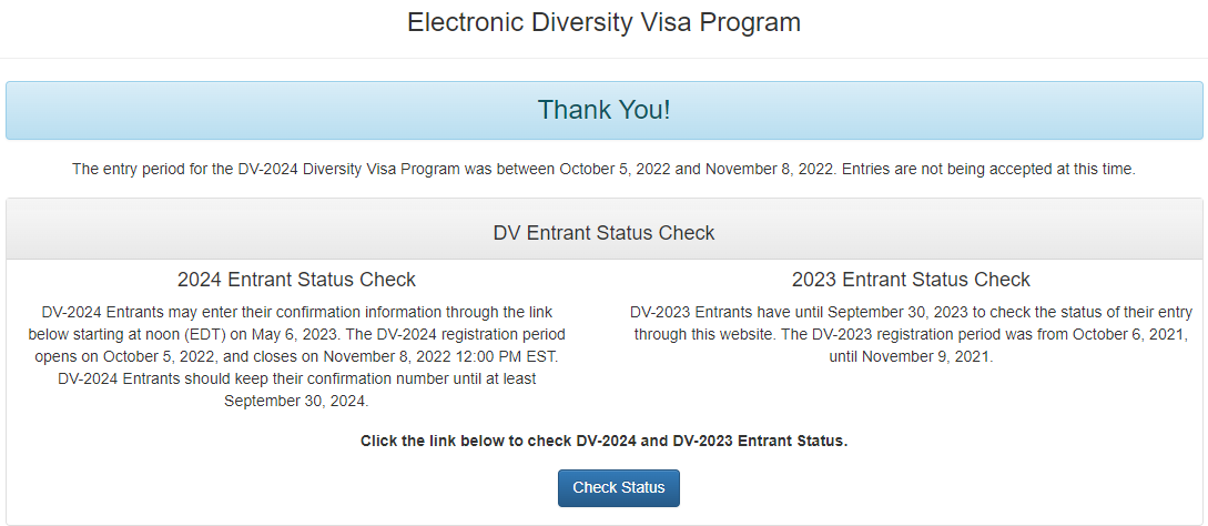 El Departamento de Estado de Estados Unidos habilitó desde horas del mediodía de este 6 de mayo el portal web oficial del Programa de Visas de Inmigrantes de Diversidad, mejor conocido como “el bombo”, para que los ciudadanos que aplicaron hace meses comprueben si han resultado ganadores en el proceso que se lleva a cabo al alzar.