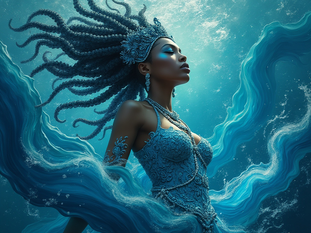 En la tradición, Yemayá es el espíritu de las aguas saladas, y su dominio se extiende sobre los océanos y los ríos. Simboliza la fuente de la vida y la protección de sus hijos, tanto espirituales como humanos. En las prácticas religiosas, se la asocia con la luna y se cree que tiene el poder de influir en las mareas, representando tanto la calma del mar como su furia cuando está enojada.