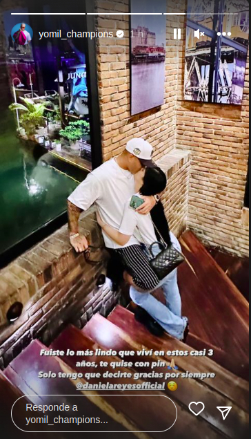 El cantante, que mantuvo una relación amorosa por más de dos años, expresó en una historia de Instagram: “Fuiste lo más lindo que viví en estos casi tres años, te quise con pin… Solo tengo que decirte gracias por siempre”.
