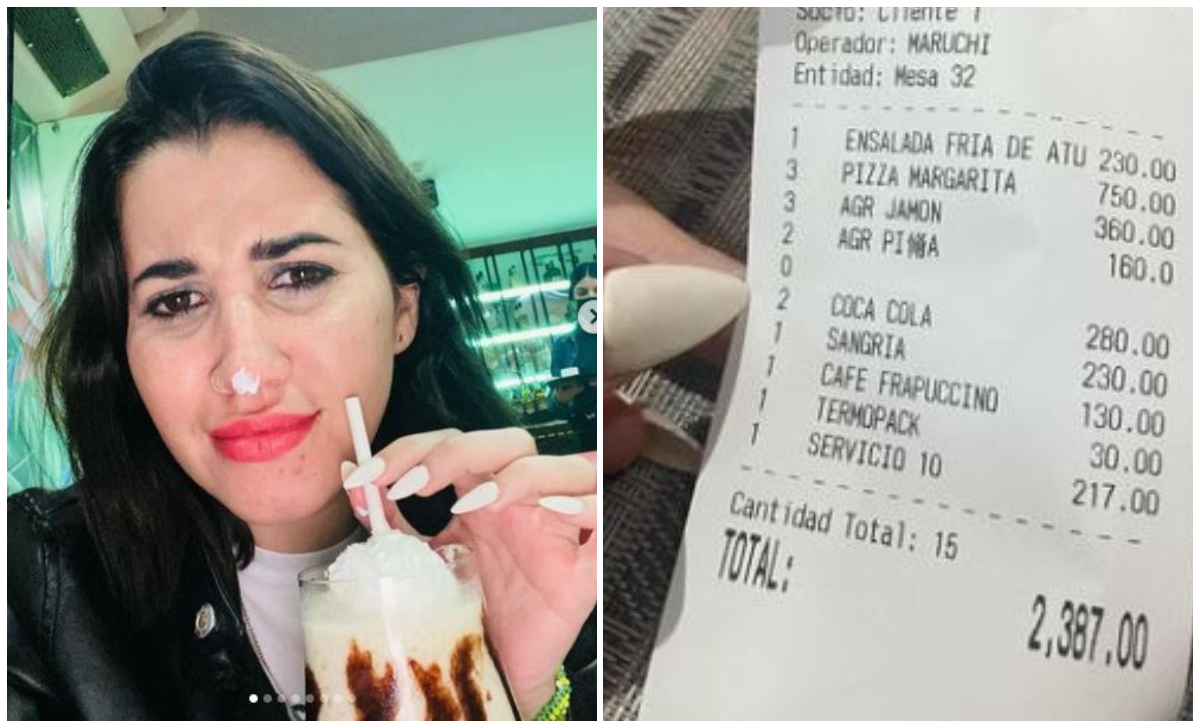 Sin embargo, lo que consumió la youtuber no fue nada del otro mundo: una ensalada de atún, una pizza, una sangría, un café y un refresco Coca-Cola.